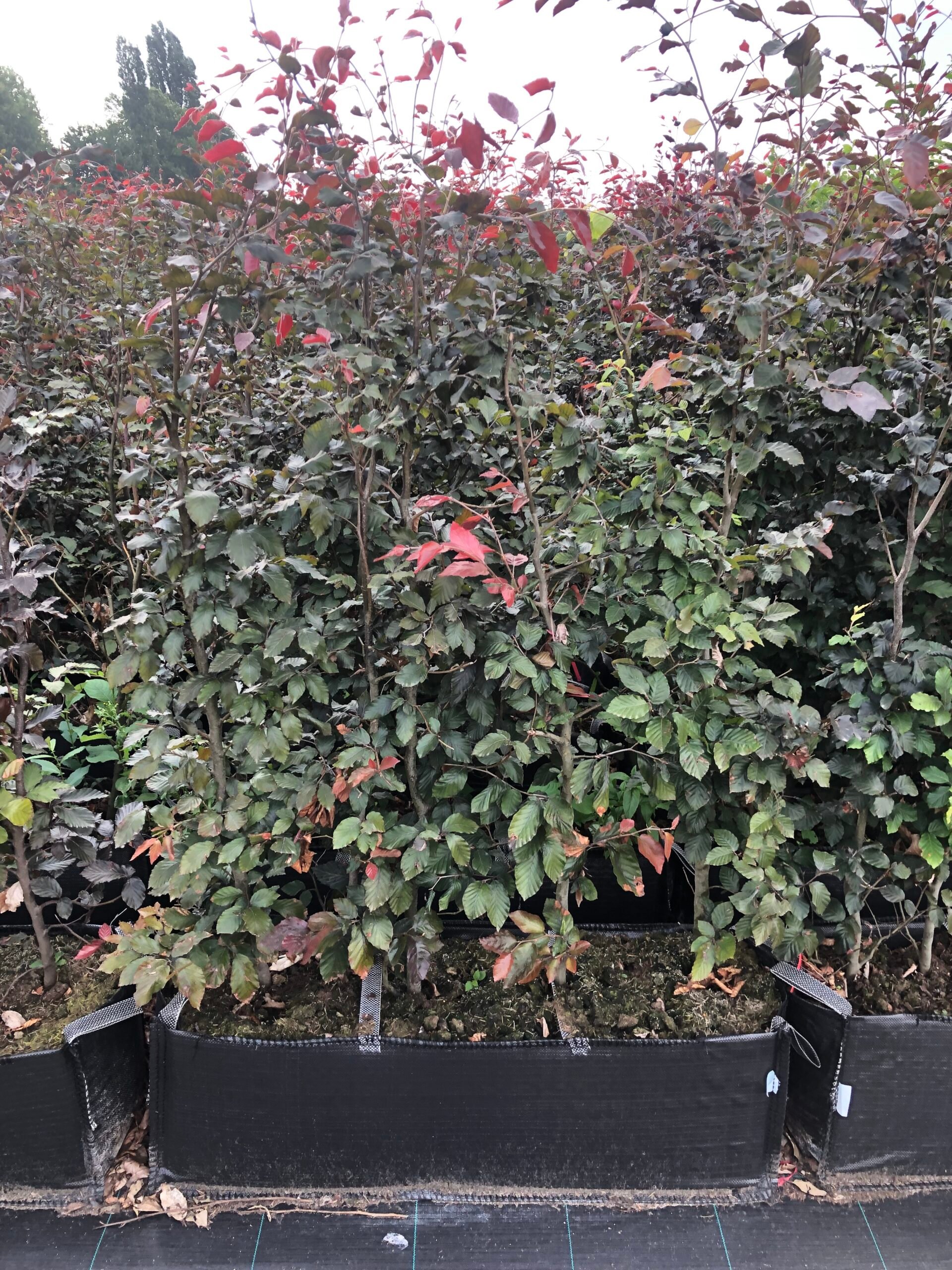 De haagbeuk (Carpinus betulus) is een ideale haagplant voor hogere hagen maar kan ook goed als ‘normale’ haag worden toegepast. Het dubbel gezaagde blad geeft jouw haag een bijzonder karakter aan deze haagbeuk. De haagbeuk wordt vaak ten onrechte verward met de groene beukenhaag (Fagus sylvatica). Het dubbel gezaagde blad is echter niet aanwezig bij de beukenhaag. In de winter verliest de Carpinus zijn blad. De haag kan 7 tot 8 meter hoog worden, maar doordat de Carpinus goed te snoeien is kan hij ook goed smal en klein gehouden worden.